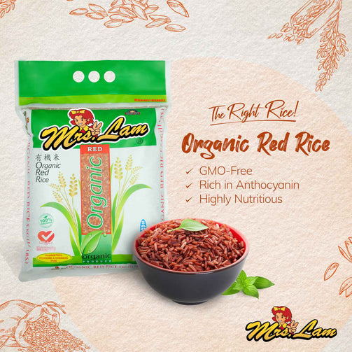 Mrs. Lam’s best-tasting Organic Red Rice is 100% certified organic red rice